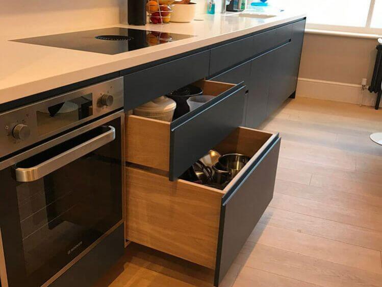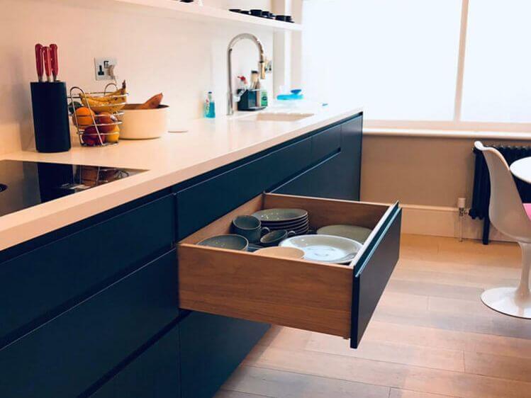 Once your designs are confirmed, we then move on to building your kitchen. All work takes place in our London-based workshop, and we install everything on site ourselves, minimising the time we need to spend in your home. And then we leave you to enjoy your beautiful new kitchen.